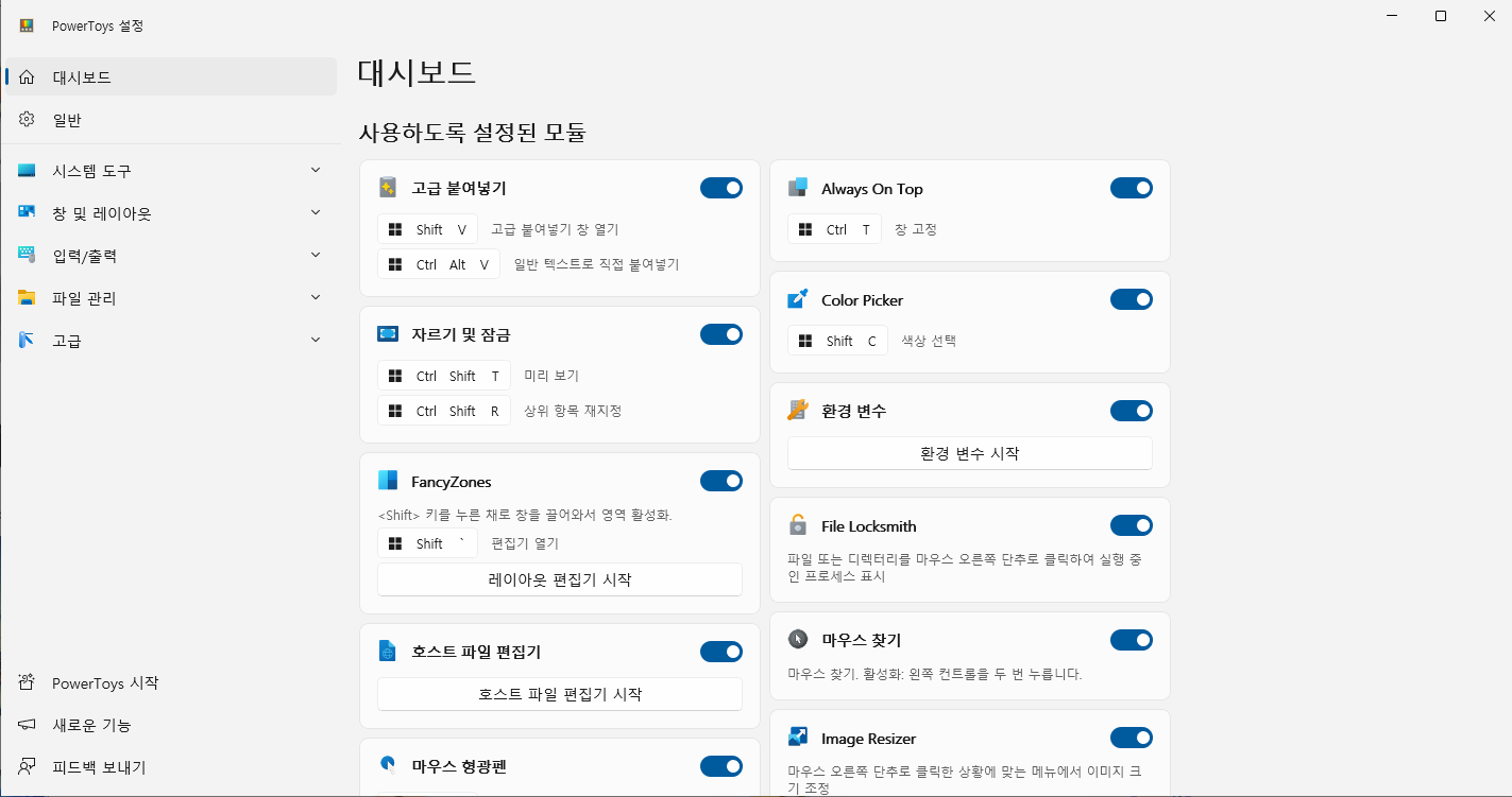 일단 기능을 확인하기 위해 PowerToys앱을 실행한다.
