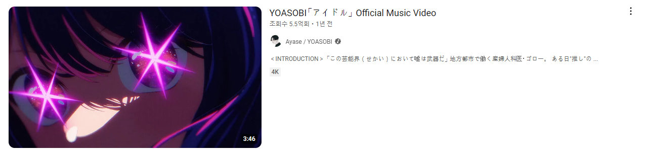최근 가장 유명했던 애니메이션 중 하나인 '최애의 아이' 애니메이션의 전체 영상(위)과 TV 방영 용도의 영상(아래)이다.