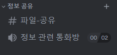 필자는 '파일 공유' 채팅 채널과 '정보 관련 통화방'이라는 음성 채널을 각각 생성하였다.