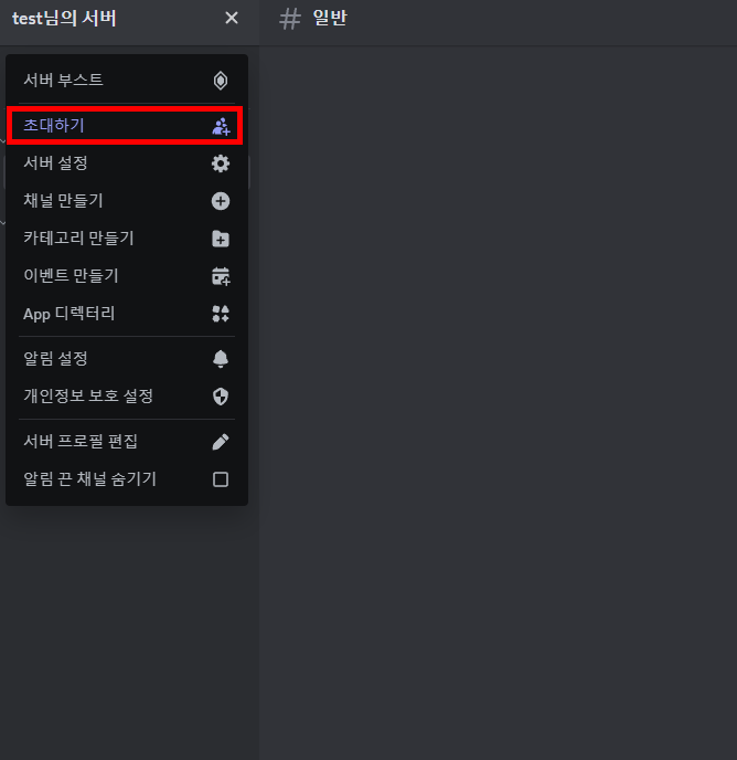이 서버에 친구를 초대하고 싶다면 좌측 상단에 서버 아이콘을 누른다.