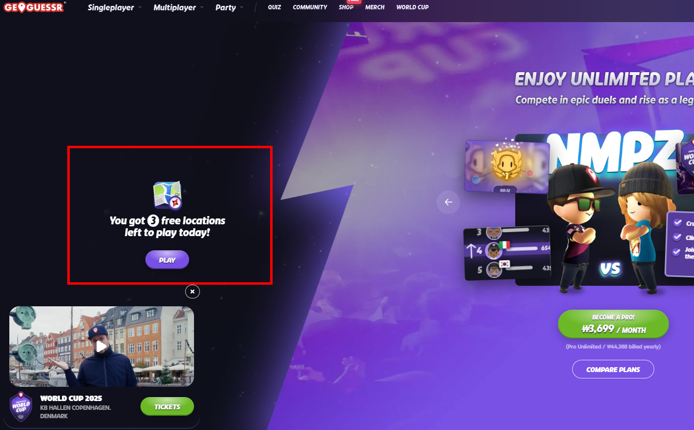 하지만 무료로 플레이 가능한 것은 하루에 3번 싱글 플레이 모드 뿐이다.
