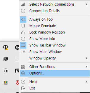 시스템 트레이에서 Options를 들어가서 설정을 시작한다.