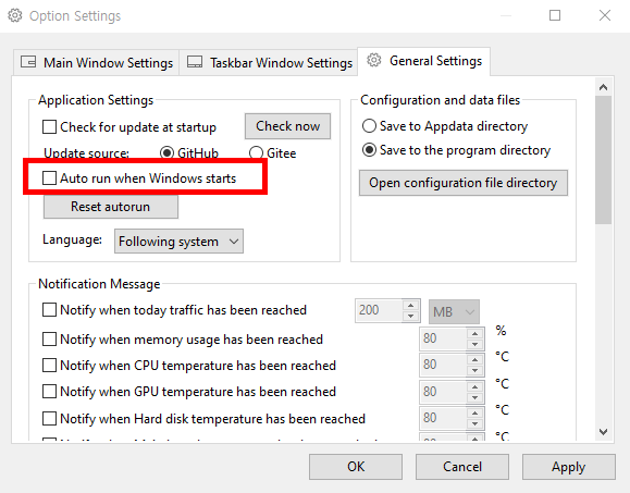 General Settings에서 Auto run when Windows starts를 설정하면 윈도우 시작 시 자동으로 시작된다.