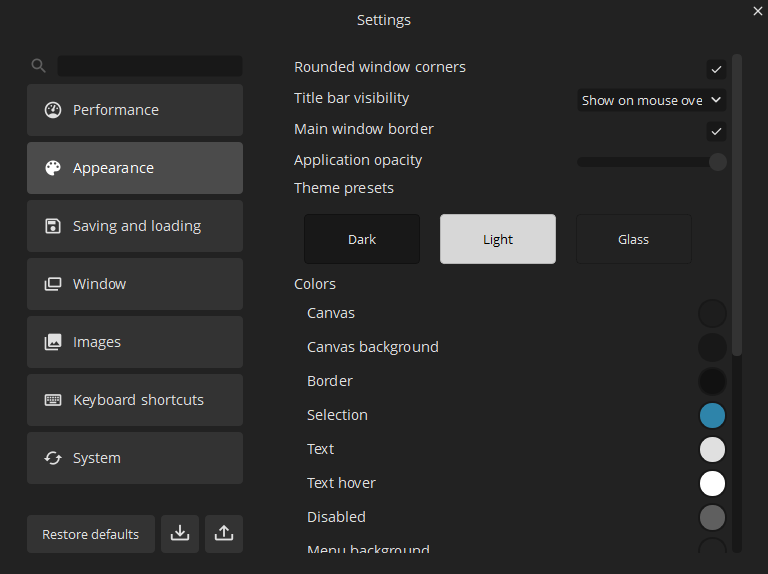 Light Mode, Dark Mode 등으로 설정할 수도 있고, 세부적으로 외곽선의 색상이나 배경 색 등을 변경할 수도 있다.