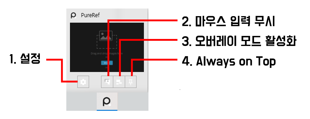 이 기능은 프로그램이 아닌 다른 창을 클릭했을 때도 PureRef 프로그램이 최상단에 위치할 수 있도록하는 옵션이다.